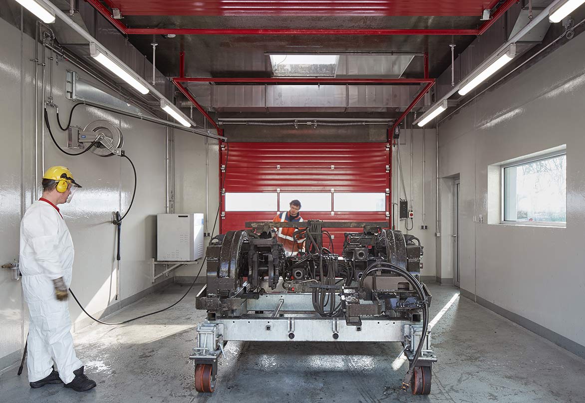 Neubau einer Reinigungskabine bestehend aus einer Waschhalle zur Reinigung von Großteilen der S-Bahnen und einer Waschkabine mit Vorbereitungsraum zur Reinigung der Toiletten.