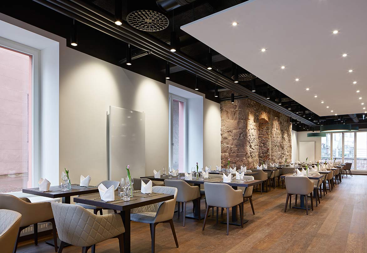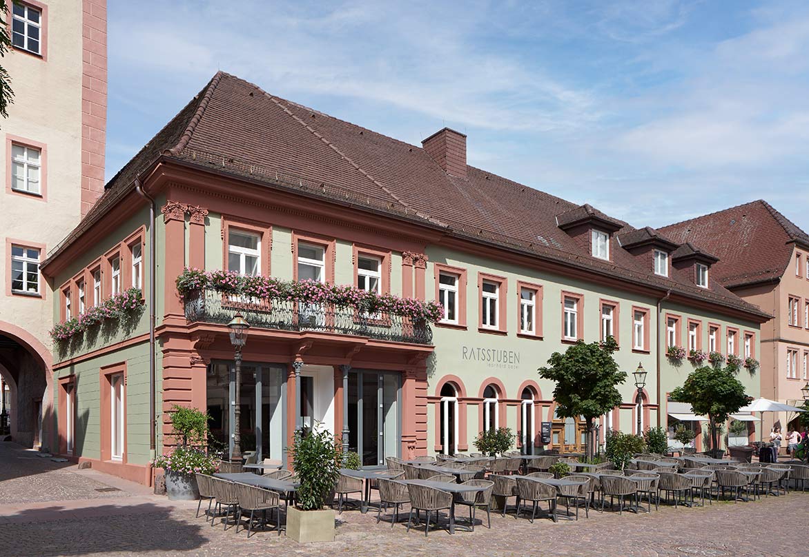 Im Herzen der Stadt Ettlingen, direkt am Marktplatz und Rathaus gelegen, konnten wir die in die Jahre gekommene Gaststätte „Ratsstuben“ zum attraktiven gastronomischen Mittelpunkt der Stadt umbauen. Ziel war es, ein feines, modernes, aber dem historischen Ort gerechtes Restaurant mit „gut badischer Küche“ zu gestalten.