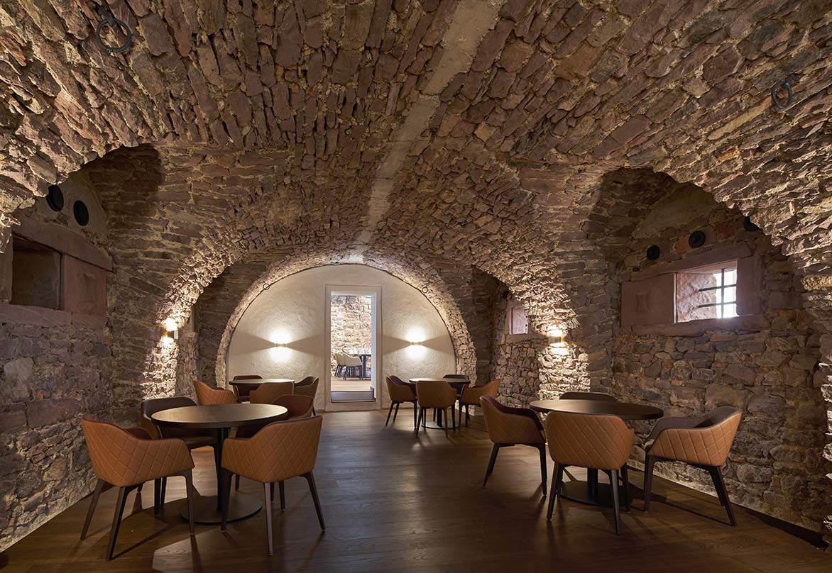 Das Salzkellergewölbe aus Sandstein wurde vom Kellenputz befreit, der wunderschöne Sandstein freigelegt und ist heute DER besondere Raum für den Gast.