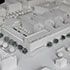In deutlichem Gegensatz dazu steht die technisch wirkende Großbebauung der EnBW, ein Gebäude mit großer Länge und Volumen, mit einem auf Fingerspitzen getragenen, fast fliegenden Vordach in enormer Höhe. Die Assoziation mit einer Tragfläche liegt nahe.