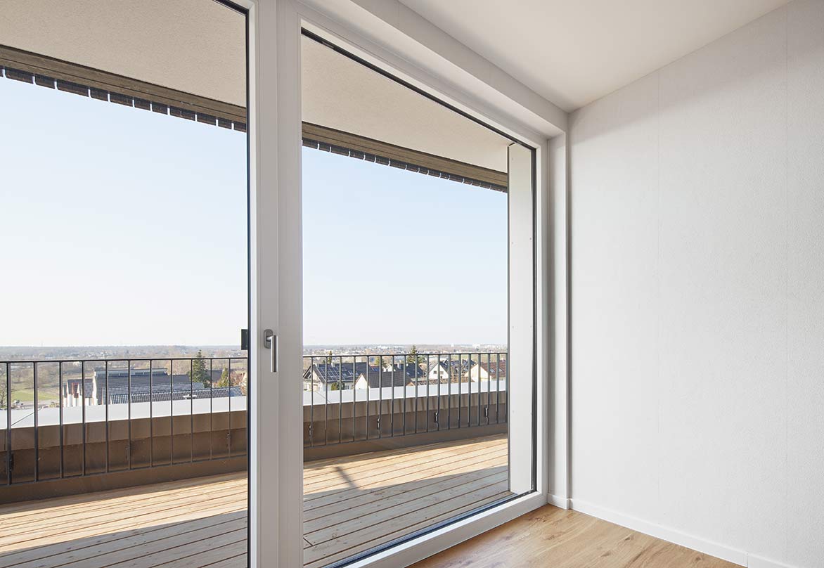 Im Wohnhaus sind 11 unterschiedlich geschnittene, barrierefreie Wohnungen entstanden, die durch verschiedene Größen sowohl für Paare, Senioren-Wohngemeinschaften oder Alleinstehende gedacht sind. Alle Wohnungen haben großzügige Loggien und Terrassen, um den Blick ins Rheintal genießen zu können. Darüber hinaus sind Gemeinschaftsräume und eine extern nutzbare Einheit entstanden, die für Behandlung, Versorgung und Organisationshilfe der Bewohner gedacht ist.