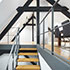 In der Dachbühne wurde noch eine Flächenreserve aktiviert und über eine filigrane Stahltreppe ein Sozialraum für die Mitarbeiter eingerichtet.