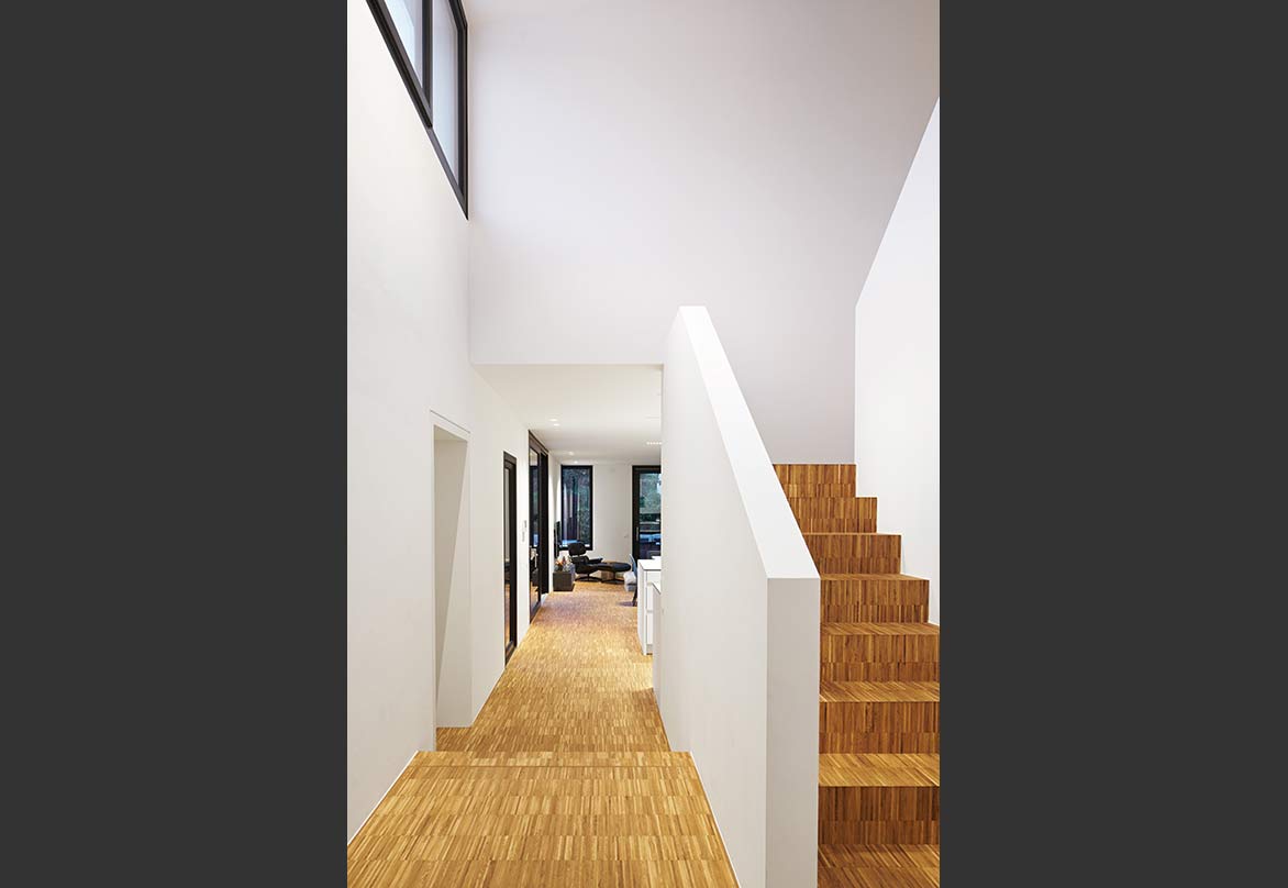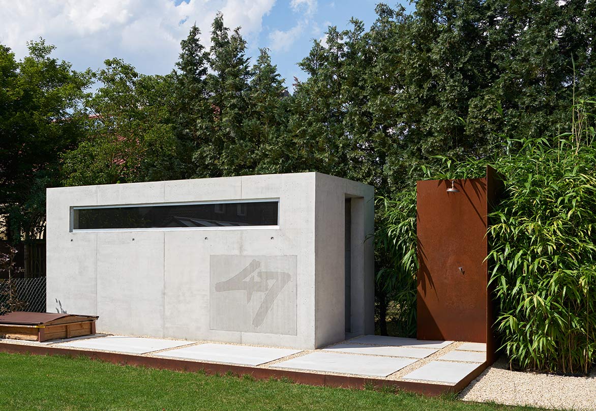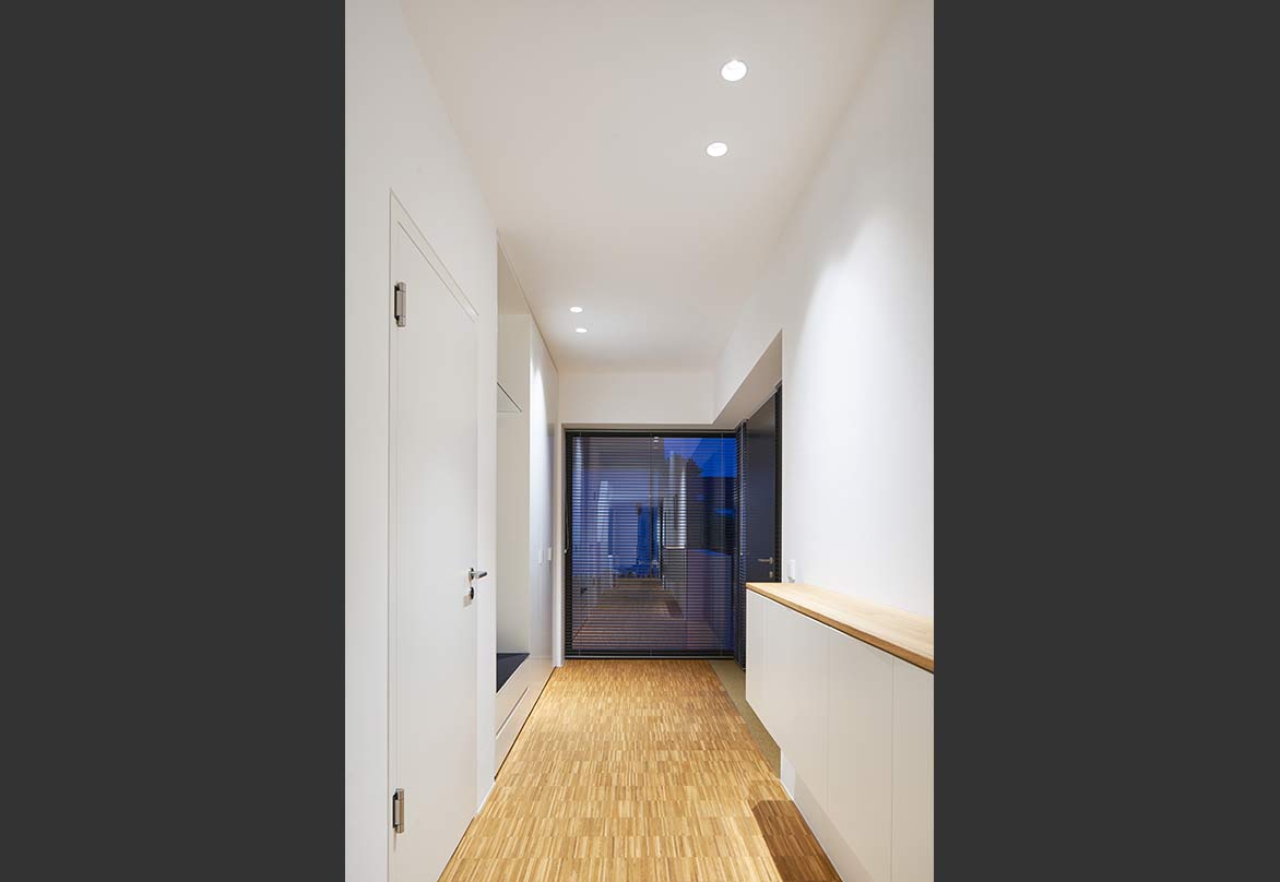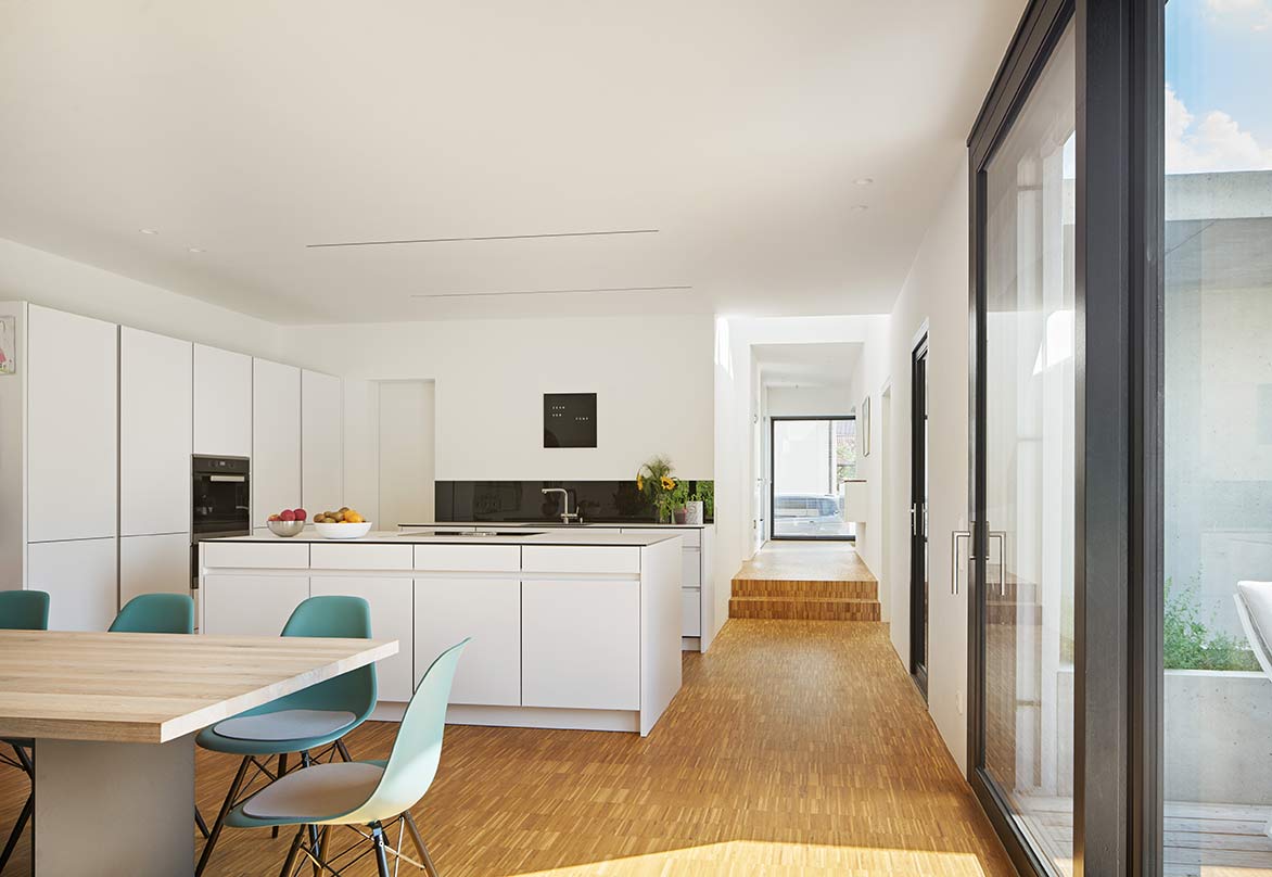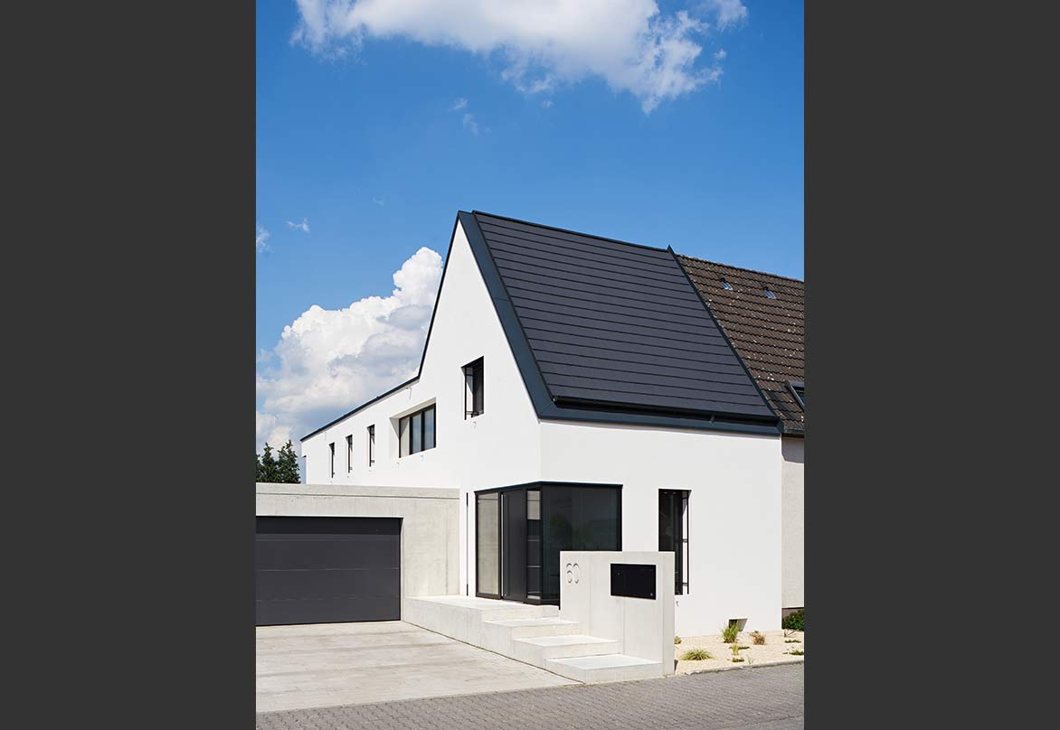 Im Habitus blieb es bei dem Siedlerhaus, um im Kanon des Straßenzuges zu bleiben. Rückwärtig konnte die für die Familie erforderliche Fläche durch einen schmalen, aber langen Baukörper erreicht werden.