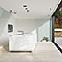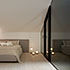 Über die Außentreppe in der Einfahrt erschließt man einen über dem zweiten Stellplatz hochgehängten, weiteren Raum. Dieser und das gegenüberliegende Zimmer kommunizieren durch die ganzflächige Giebelverglasung, die sich in den Luftraum hin orientiert, miteinander.