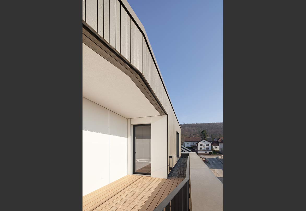 Im Wohnhaus sind 11 unterschiedlich geschnittene, barrierefreie Wohnungen entstanden, die durch verschiedene Größen sowohl für Paare, Senioren-Wohngemeinschaften oder Alleinstehende gedacht sind. Alle Wohnungen haben großzügige Loggien und Terrassen, um den Blick ins Rheintal genießen zu können. Darüber hinaus sind Gemeinschaftsräume und eine extern nutzbare Einheit entstanden, die für Behandlung, Versorgung und Organisationshilfe der Bewohner gedacht ist.