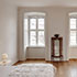 Mit wenigen Eingriffen und unter größter Zurückhaltung bei der Materialwahl und Farbgestaltung konnten wir die Räume in ihrer Wirkung belassen. So wurde zum Beispiel das Bad mit Objekten möbliert, die frei auf dem durchgehenden Dielenboden stehen und auf jegliche Fliesen und sonstigen badtypischen Einrichungen verzichtet. Der Raum wirkt dadurch nicht wie ein Badezimmer, sondern die ursprüngliche Atmosphäre bleibt gewahrt.