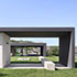 Es entstand ein zusammenhängender, kreuzförmiger Baukörper der durch seine Form die Freiflächen in vier differenzierte Außenbereiche gliedert, den Zufahrts-/Eingangsbereich, den Außenbereich für den Gast, den Rückzugsgarten mit Feuerstelle und den Hauptgarten mit Terrasse und Pool.