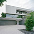 Das dreigeschossige Einfamilienwohnhaus erstreckt sich über ein Hanggrundstück. Der gestaffelte Baukörper mit Flachdach beinhaltet neben den Wohnräumen für eine vierköpfige Familie eine Doppelgarage und eine Einliegerwohnung.