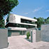 Das Gebäude wird von der Straße aus über einen Eingangshof hinweg auf dem unteren Niveau erschlossen. Hier befindet sich ein großzügiges Foyer, das Durchblicke in den rückseitigen Garten gewährt und den Besucher über den Treppenraum nach oben in den Wohnbereich geleitet. Der über drei Geschosse offene Treppenraum verbindet die Wohnräume miteinander.