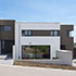 Die Hauseingänge, auch nicht in spiegelbildlicher Anordnung, liegen in den zurückspringenden, dunkel verputzten Gebäudeteilen. Daneben in den weiß verputzten Baukörpern finden sich die Hauptnutzflächen.