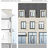 Die im Bestand geschlossene 3-geschossige Giebelseite zur Friedrichstraße wird gleichmäßig durch großzügige Fenster geöffnet. Der wichtige Auftakt der Fußgängerzone mit der Gebäudeecke Leopoldstraße - Friedrichstraße wird damit in die Fassadengestaltung einbezogen. Es entstehen hochwertige Wohnräume mit Ausblick über den Stadtgarten und entlang der Schöllbronner Straße. Durch die getaktete Lochfassade ist der notwendige statische Eingriff dabei gering.