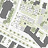 Der Quartiersplatz liegt an der Schnittstelle zwischen Investoren- und Baugruppenbebauung. Zum Quartiersplatz sind ausschließlich Wohnungen orientiert, sodass diese wichtige Freifläche zur Kommunikationsplattform für die Bewohner beider Bereiche wird. Durch verschiedene Höhen werden die Flächen subtil gegliedert. Die begrünte, tribünenartig aufsteigende Überdachung der Tiefgaragenabfahrt schließt die große Spielplatzfläche zur Ludwig-Albert-Straße räumlich ab, schafft Ruhe und Sicherheit. Die Tiefgarage erhält an dieser zentralen Stelle einen offenen, direkten Zugang.