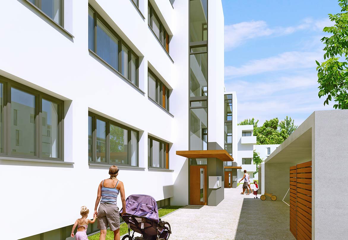 Der neue Gebäudetyp ist in seiner Grundstruktur flexibel und so entwickelt, dass er sämtliche Anforderungen an die Miets- und Eigentumshäuser bedienen kann.