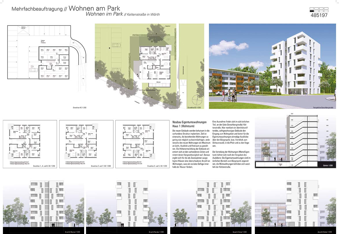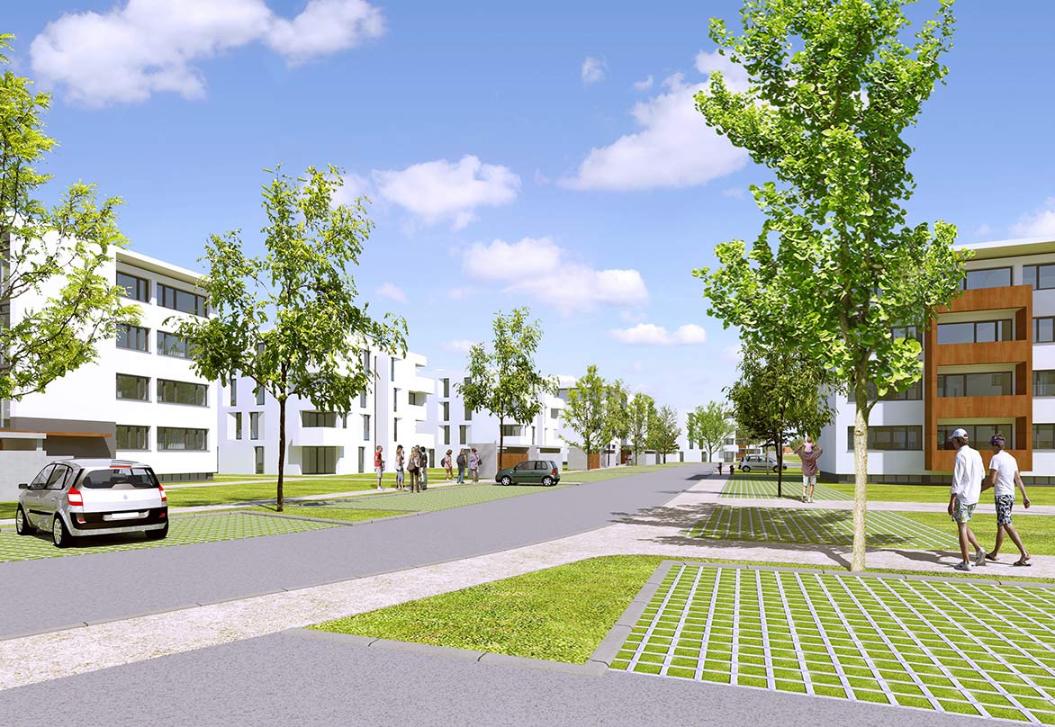 Aufgrund der geringen Flächenausnutzung des Gebietes beabsichtigt die WOHNBAU WÖRTH eine städtebauliche Nachverdichtung mit Wohngebäuden. Um die Attraktivität des Standorts zu erhöhen, soll zugleich die Sanierung der Bestandsgebäude vorgenommen werden, die im Zusammenhang mit dem architektonischen Gesamtbild des Gebietes zu betrachten ist. Ein attraktives Wohnumfeld, das im jetzigen Zustand durch die Anordnung von Garagenhöfen und undefinierten Freiflächen dominiert wird, soll geschaffen werden. Ziel der WOHNBAU WÖRTH ist es, qualitativen und bezahlbaren Wohnraum, sowohl zur Miete als auch als Eigentum, zur Verfügung zu stellen.