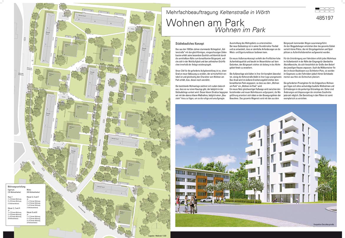 Das Wohngebiet Keltenstraße liegt im Stadtteil Wörth und ist von einer viergeschossigen Zeilenbebauung aus den Baujahren 1965/66 geprägt. Das Areal umfasst eine Gesamtfläche von ca. 35.000 m2 und grenzt im östlichen Bereich an den Bürgerpark.