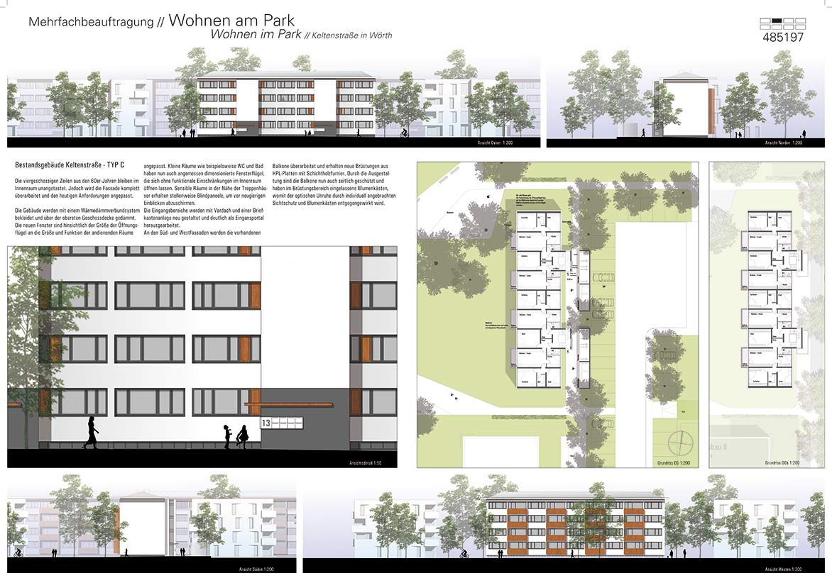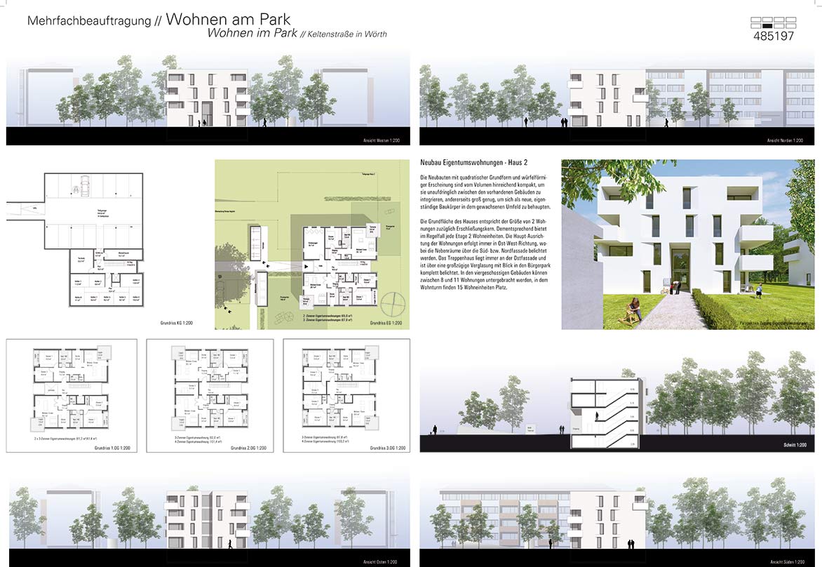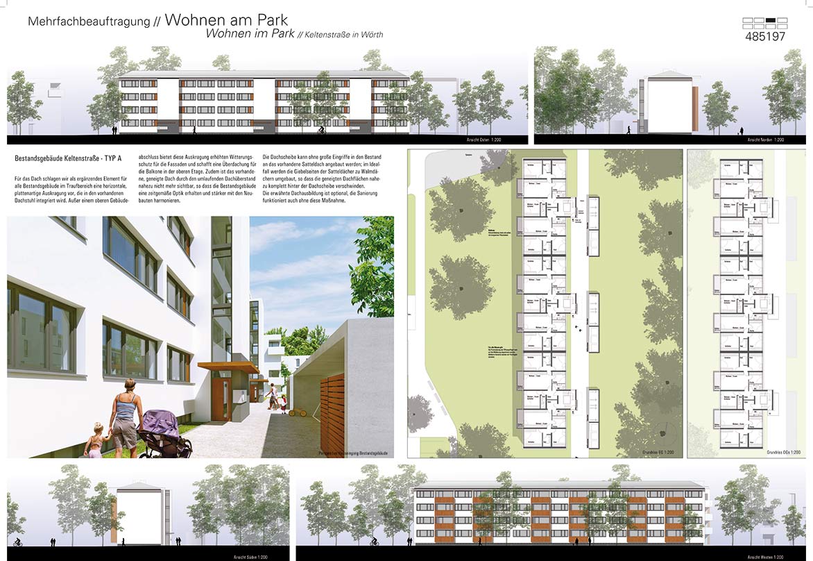 Unser Ziel für die geforderte Aufgabenstellung ist es, einen Grad an neuer Bebauung zu erzielen, der wirtschaftlich rentabel ist und gleichzeitig den Charakter vom Wohnen am Park erhält bzw. diesen noch verstärkt.
